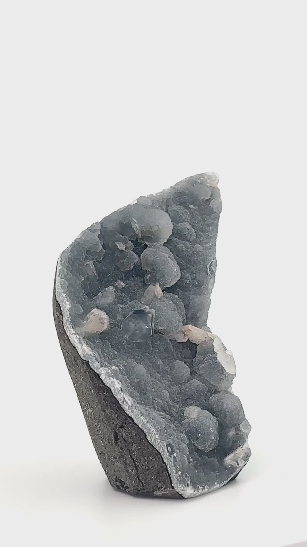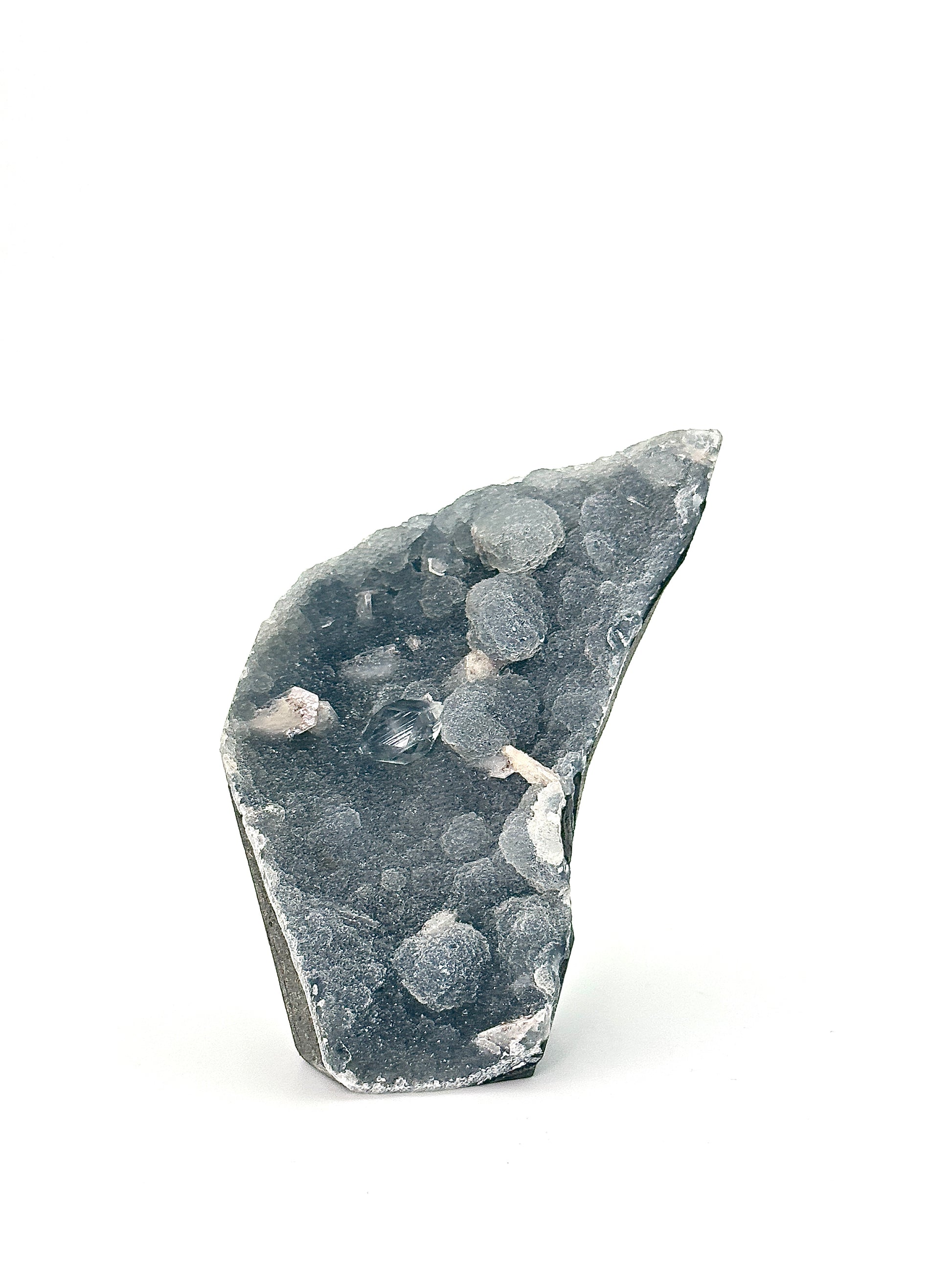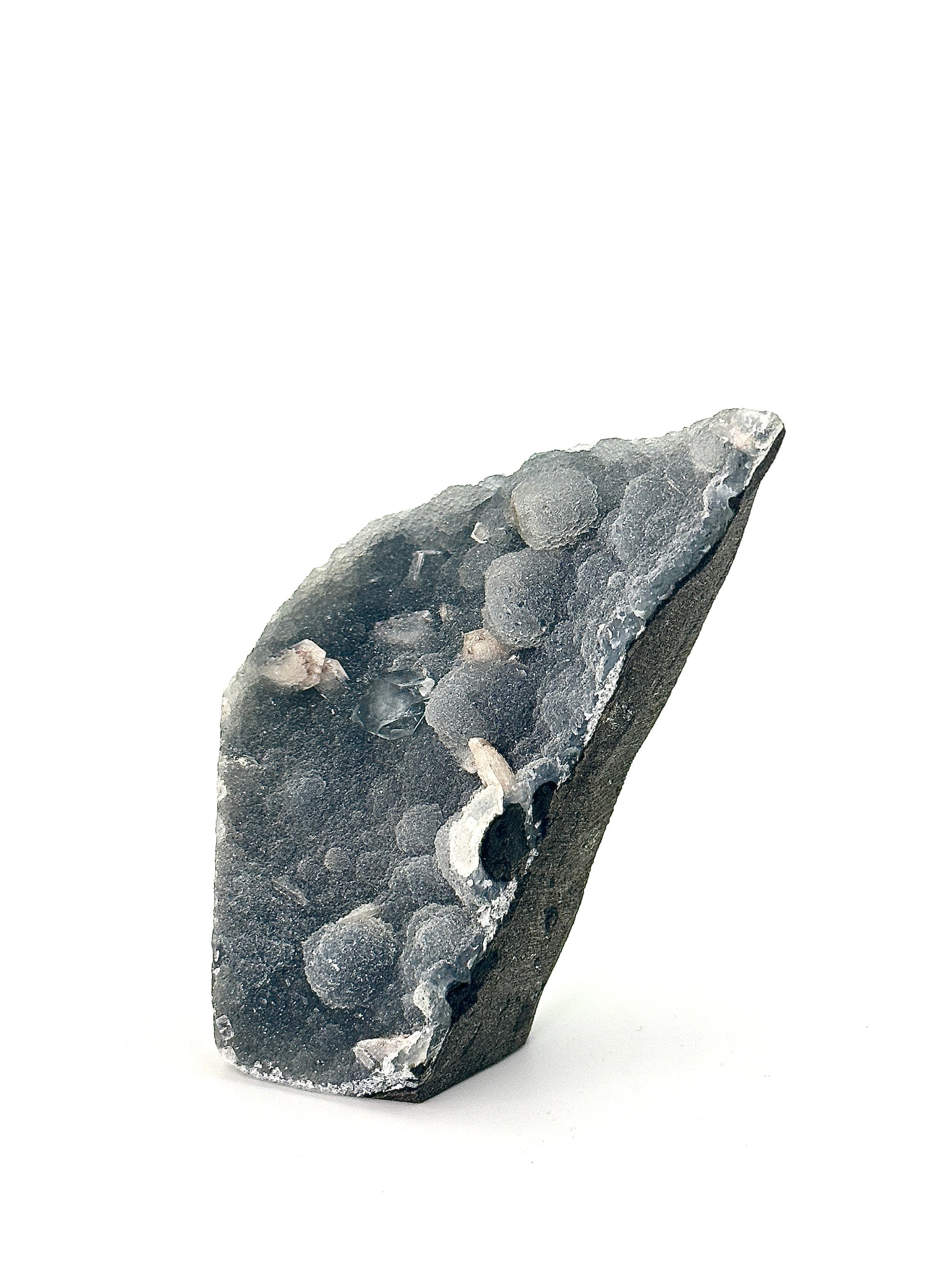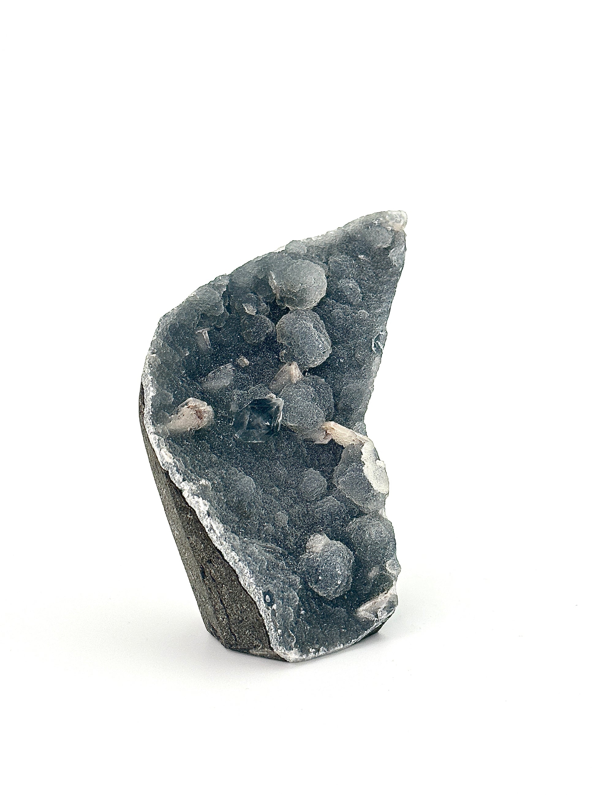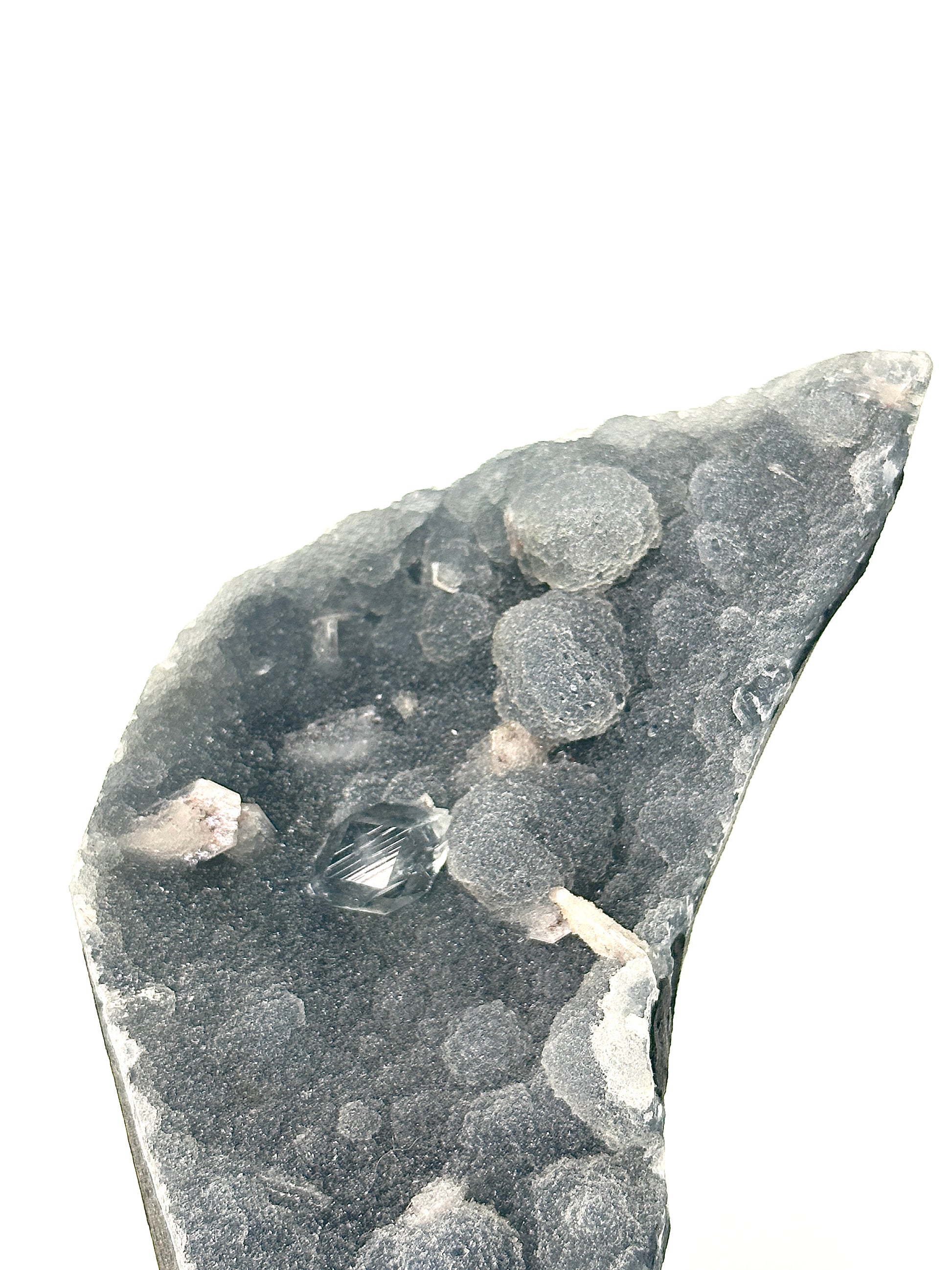 This charming specimen is Botryoidal Black Chalcedony with Diamond Apophyllite and Stilbite