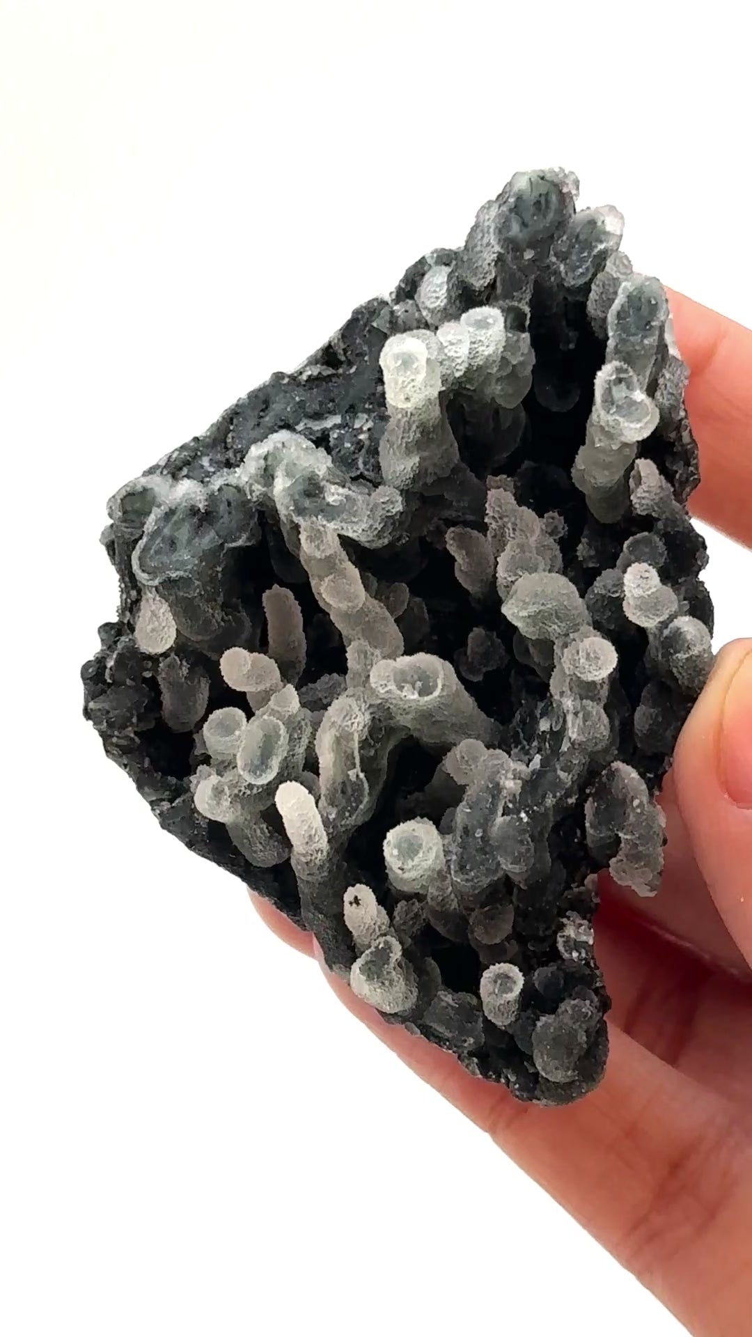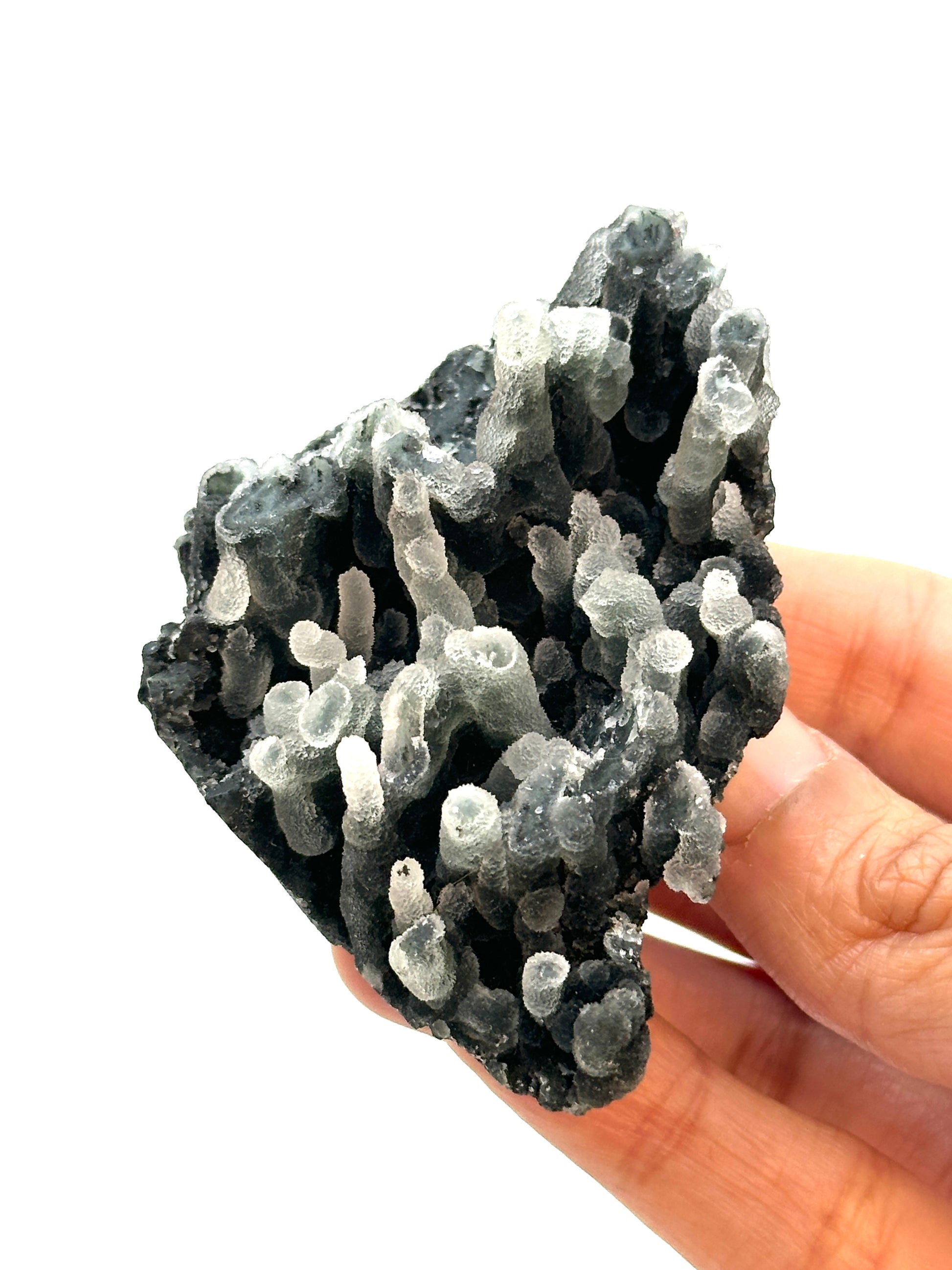 Behold this exquisite Black Chalcedony with Stalactite formations.