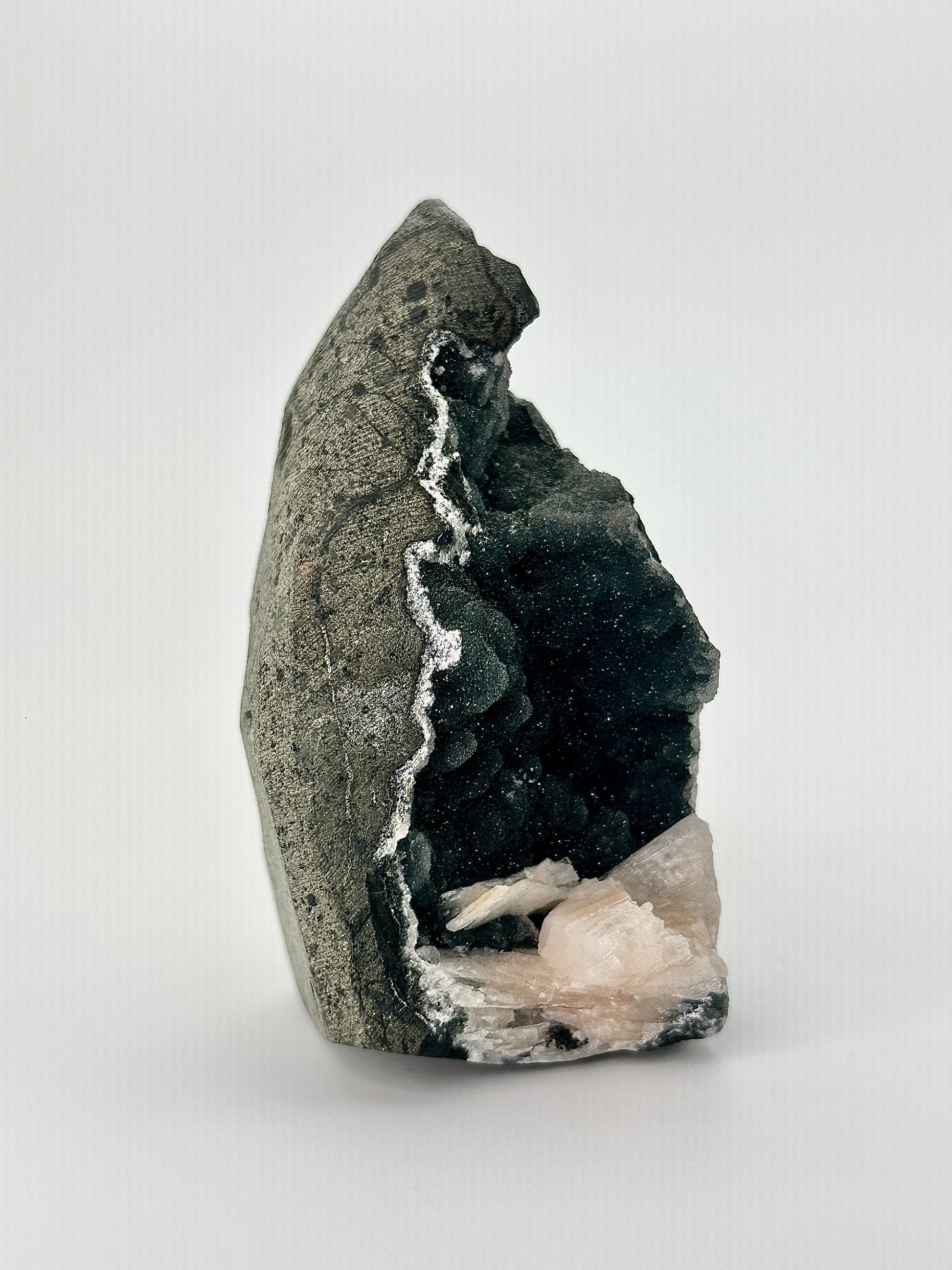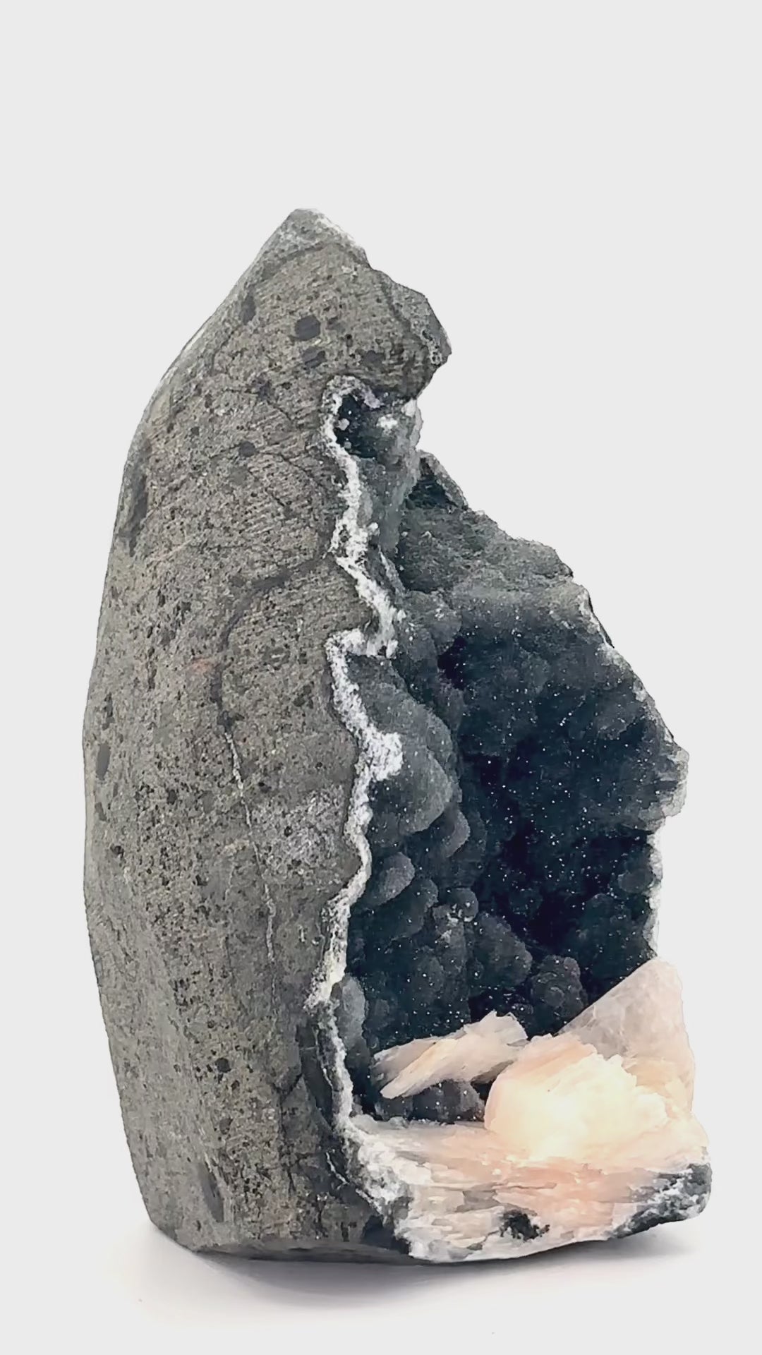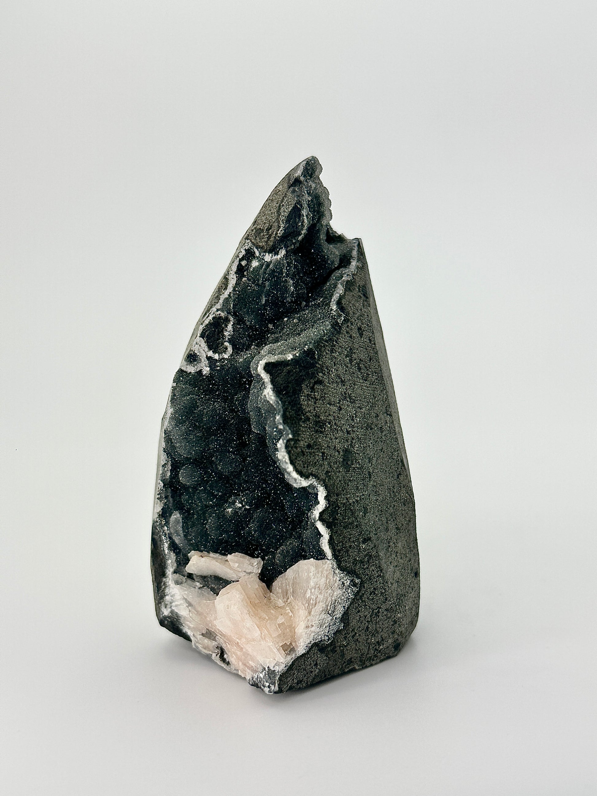 This luscious piece is Botryoidal Black Chalcedony with Stilbite