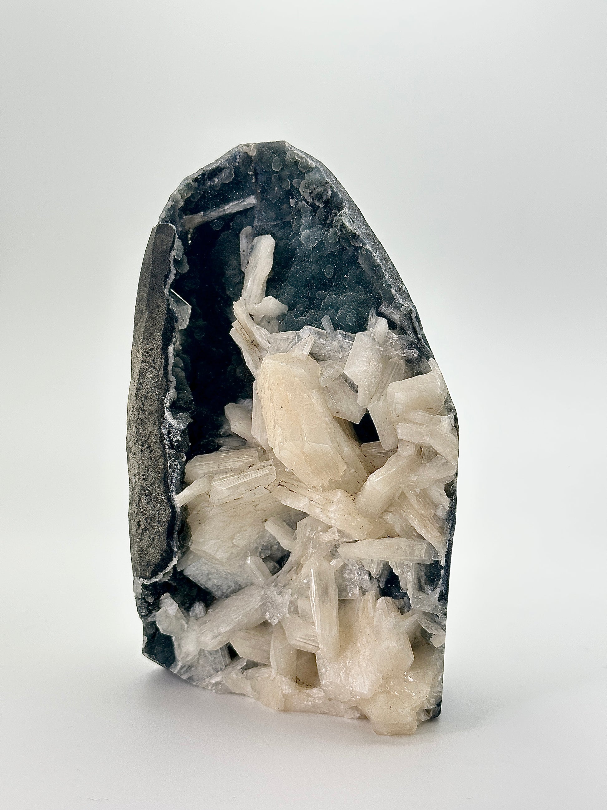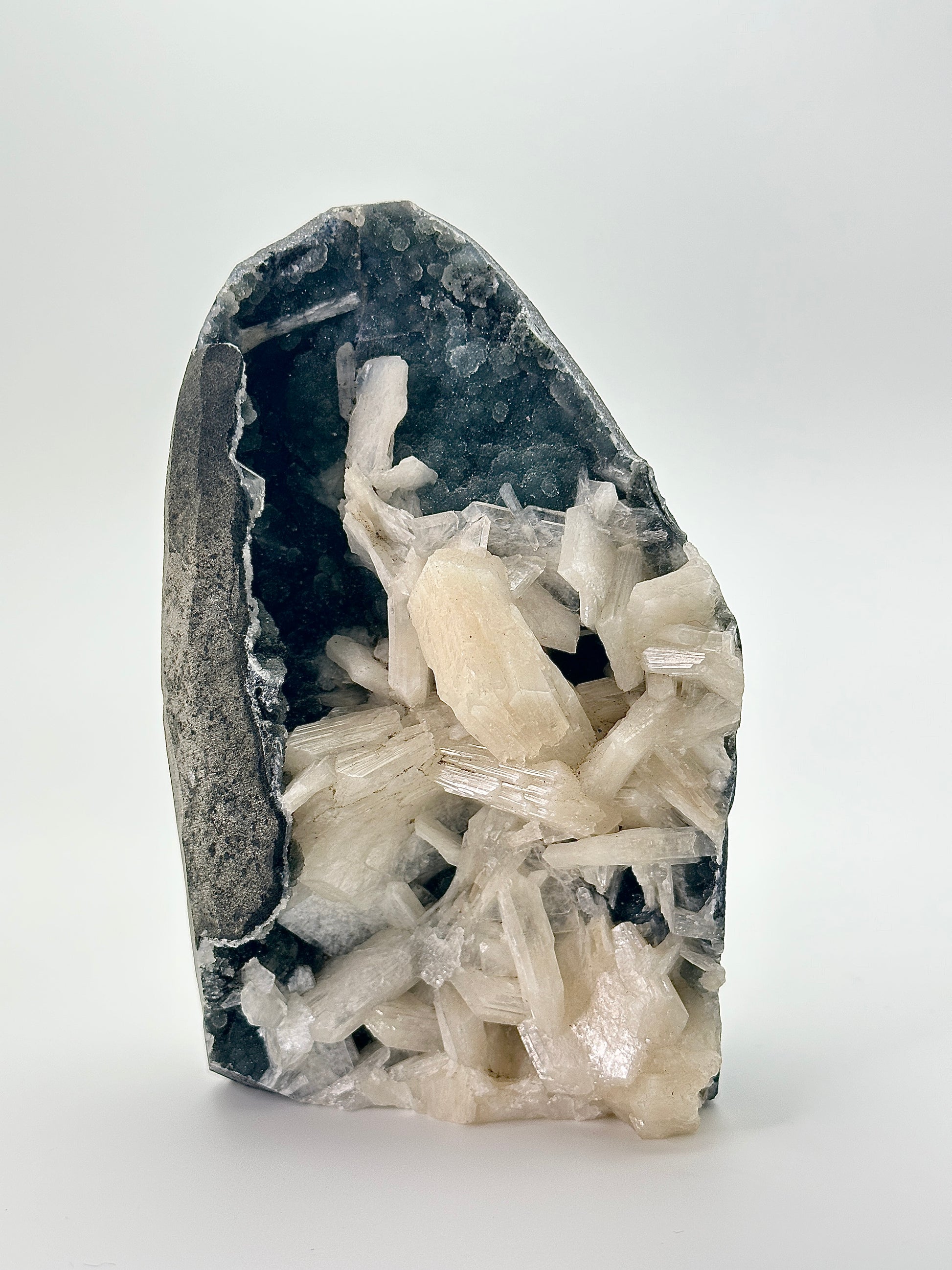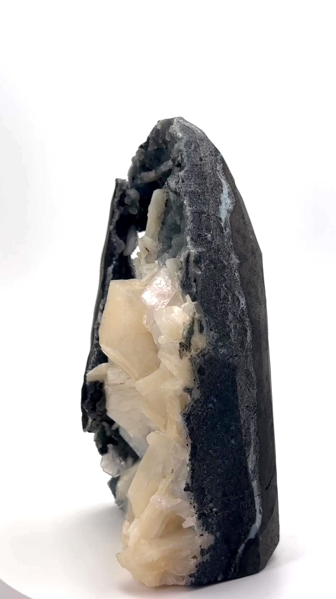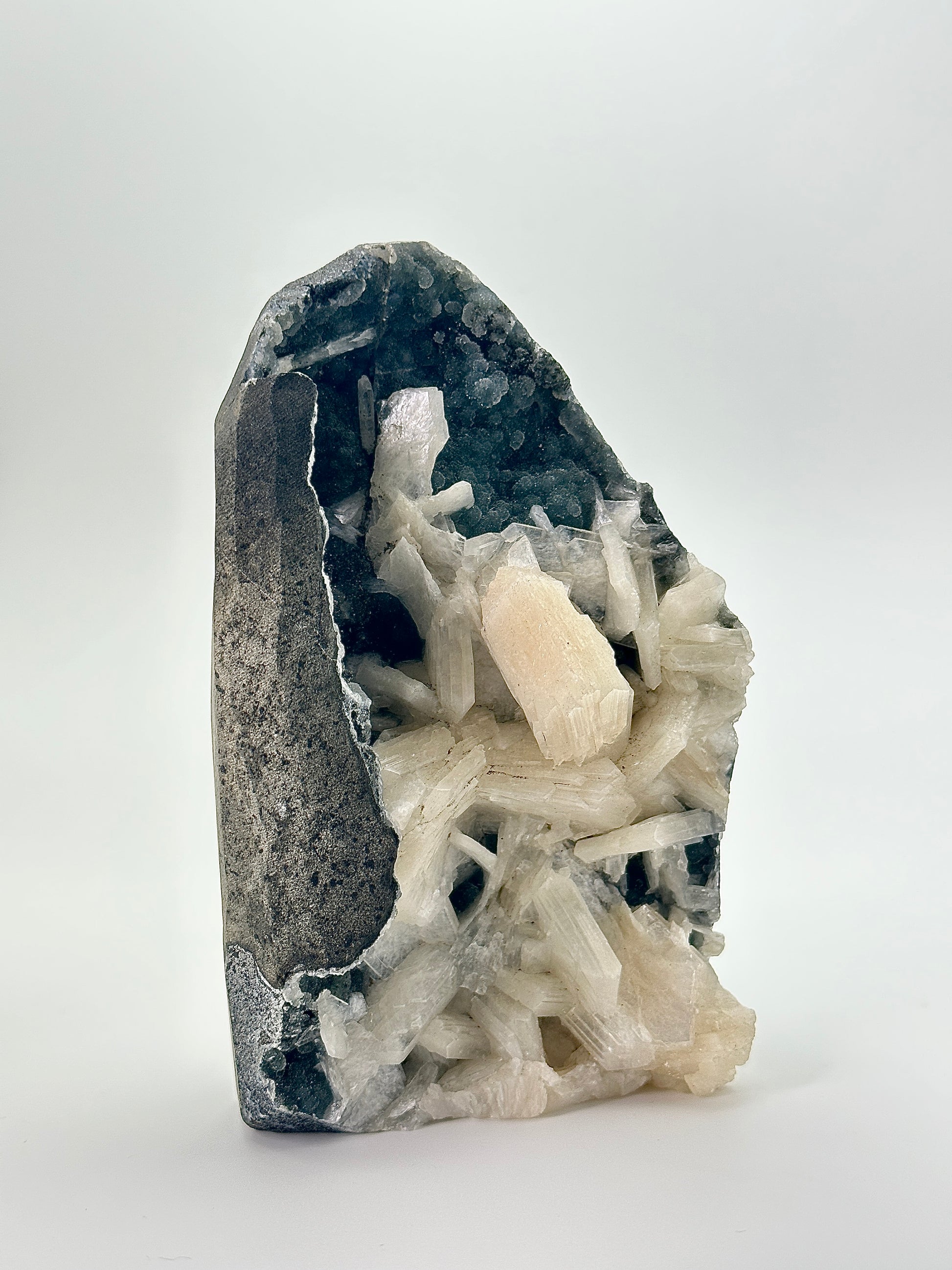 This complex structural piece is Botryoidal Black Chalcedony with Stilbite