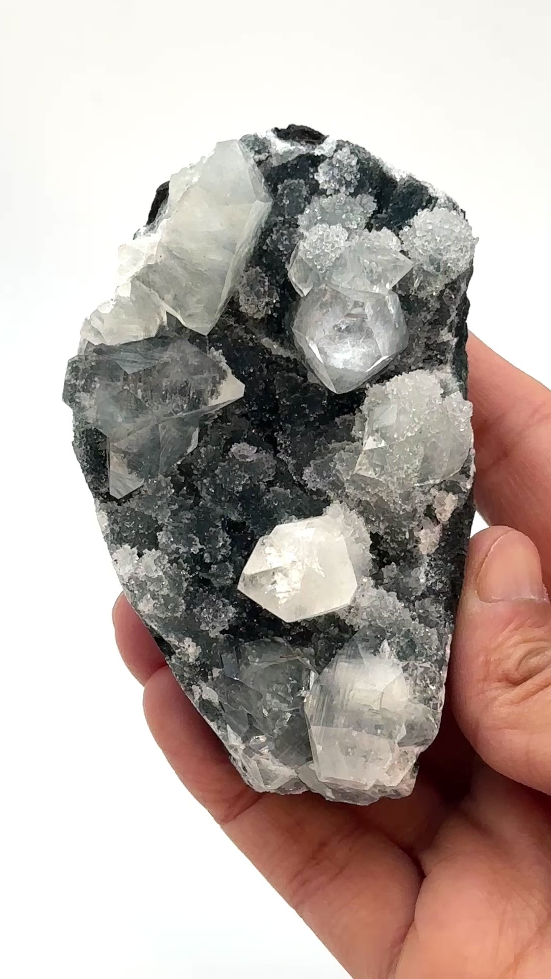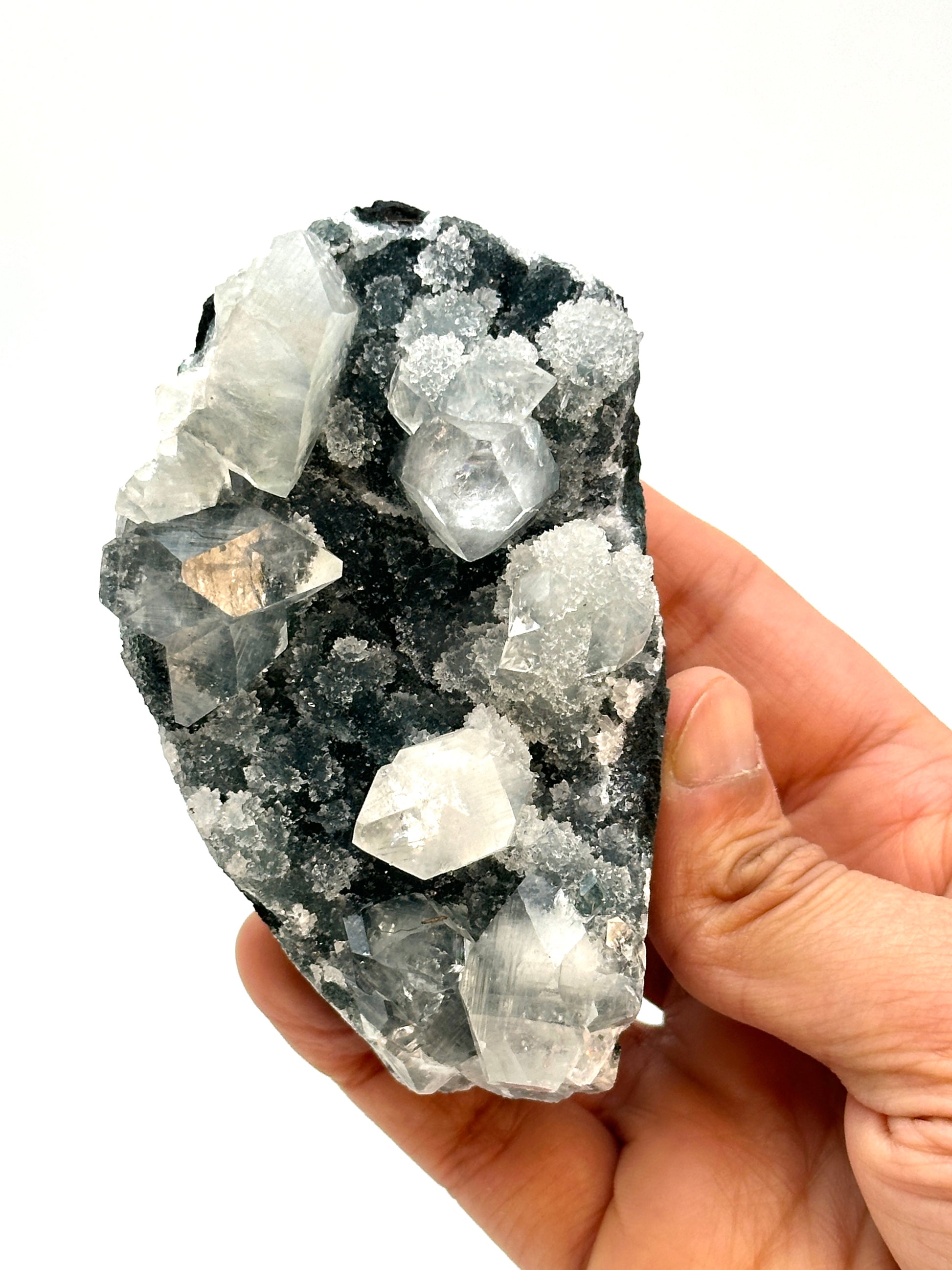 A sparkly Black Chalcedony with Apophyllite specimen.