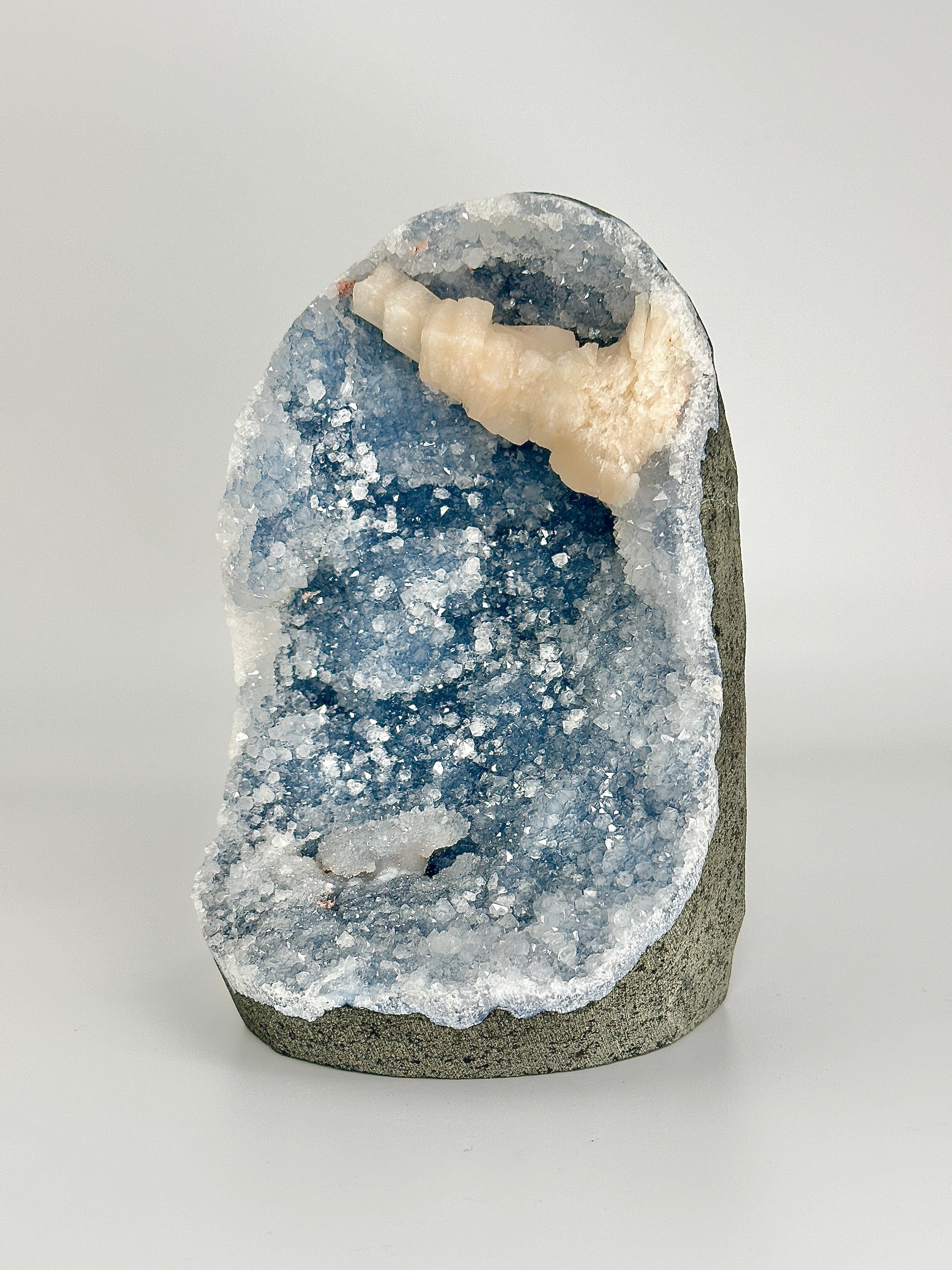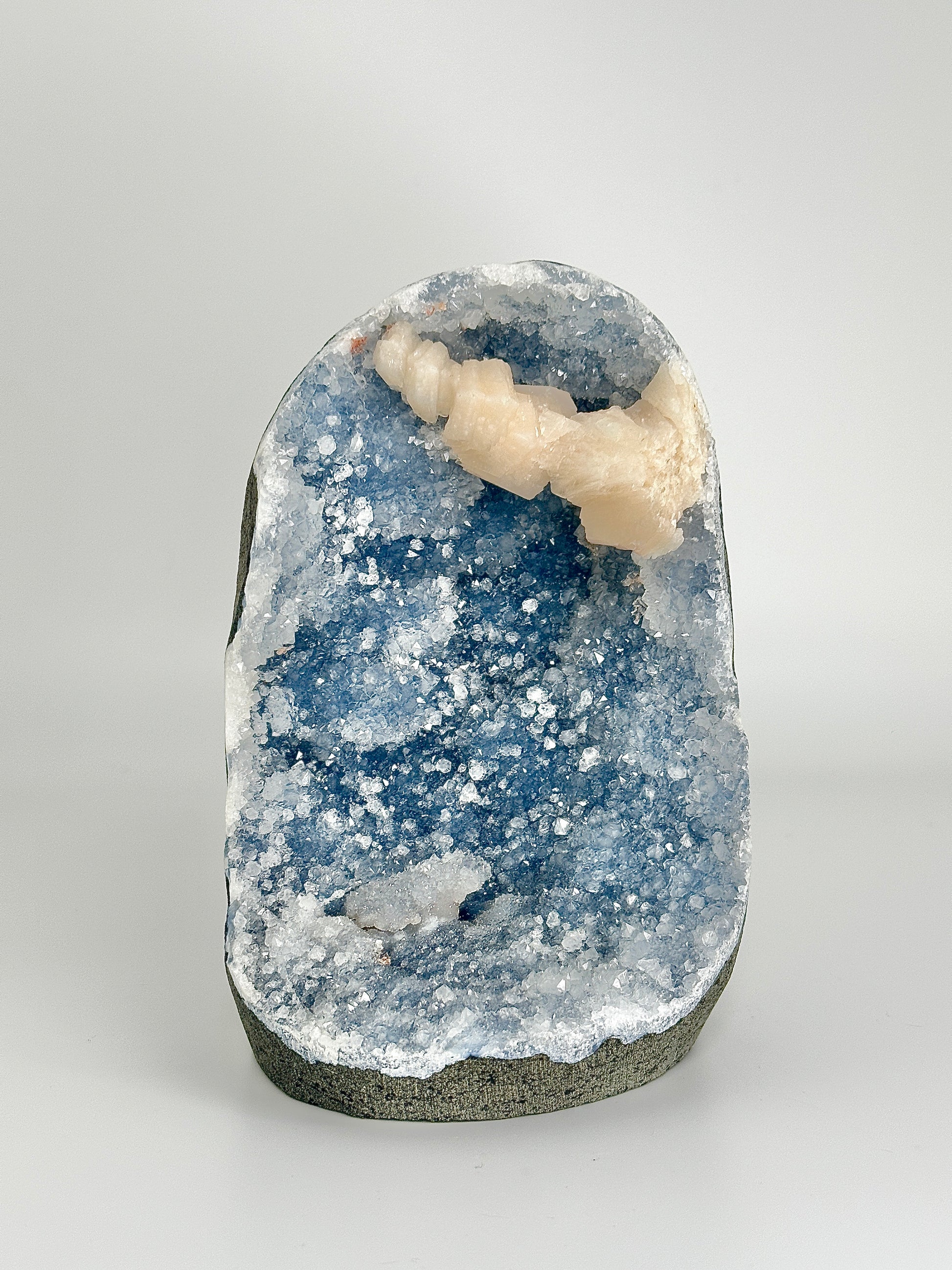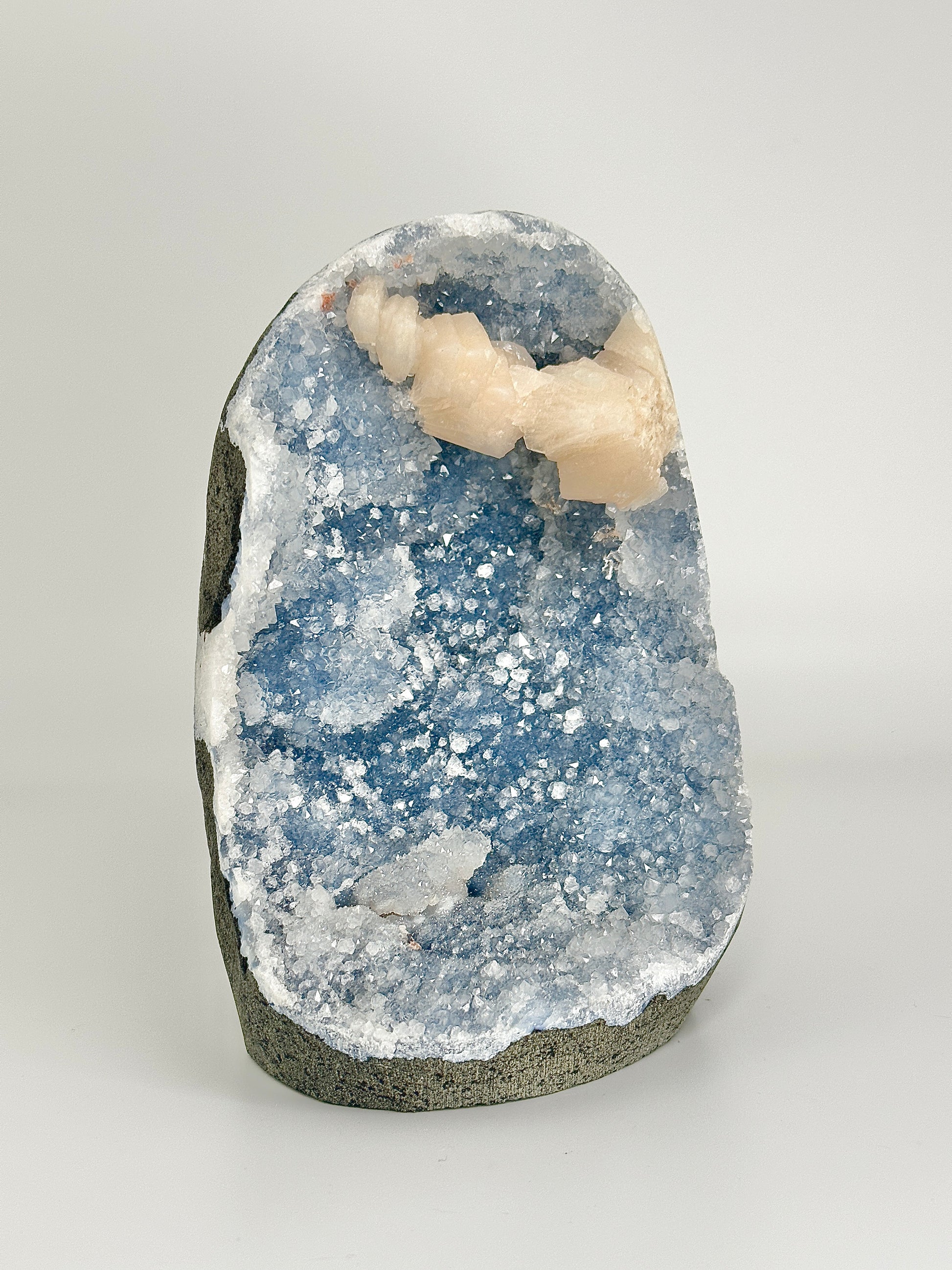 Behold this incredibly sparkly Blue Chalcedony Druzy with Stilbite.