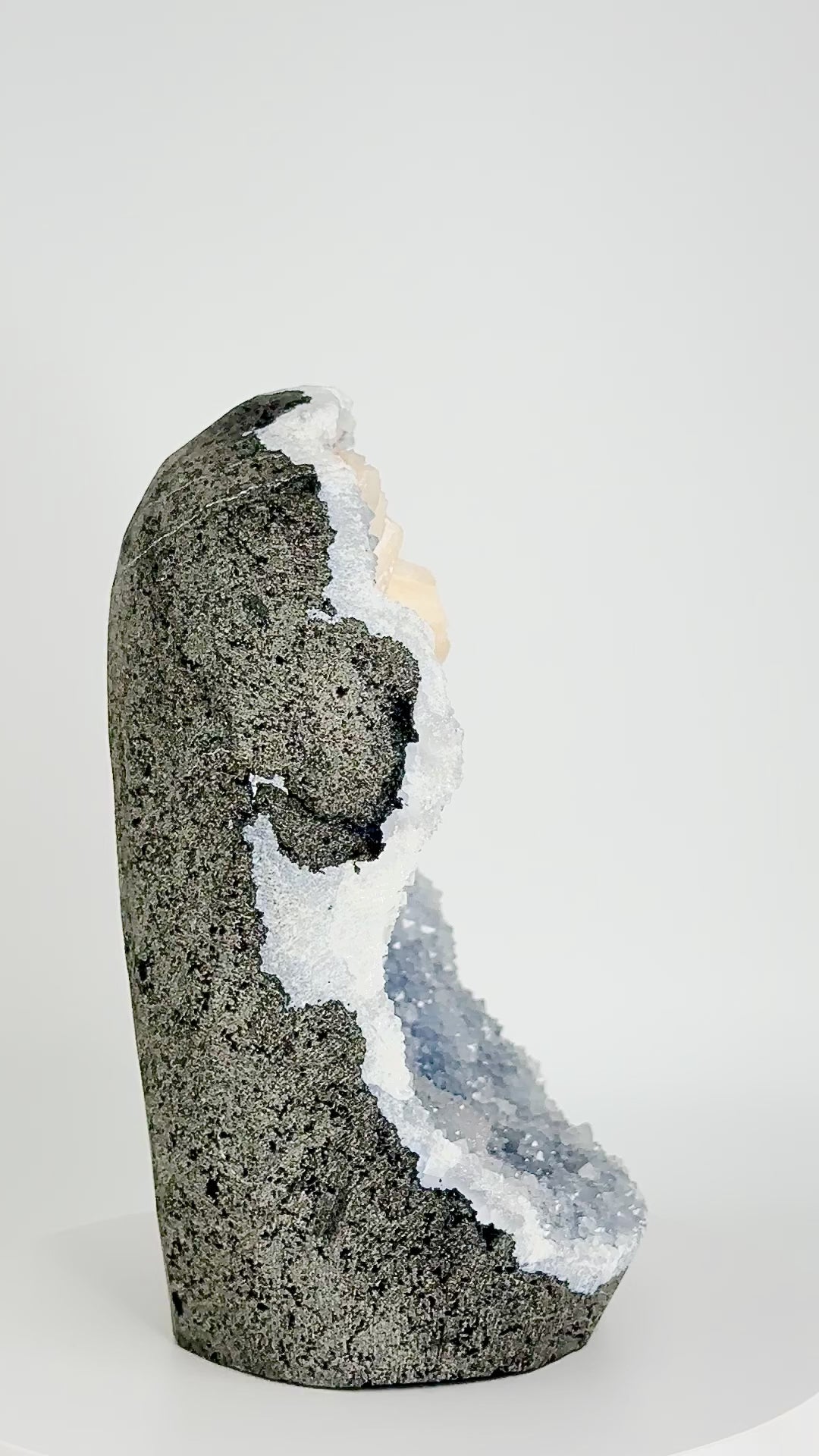 Chalcedony is a great stone for activating our Throat and Third Eye Chakra. It helps boost our communication and self expression. Known as the "Speakers Stone" Blue Chalcedony helps us set better boundaries with people around us and helps us detach from habits & patterns that do not serve us. It also boosts our intuition and psychic visions and brings clarity of thought. It also brings grounding & protection.
