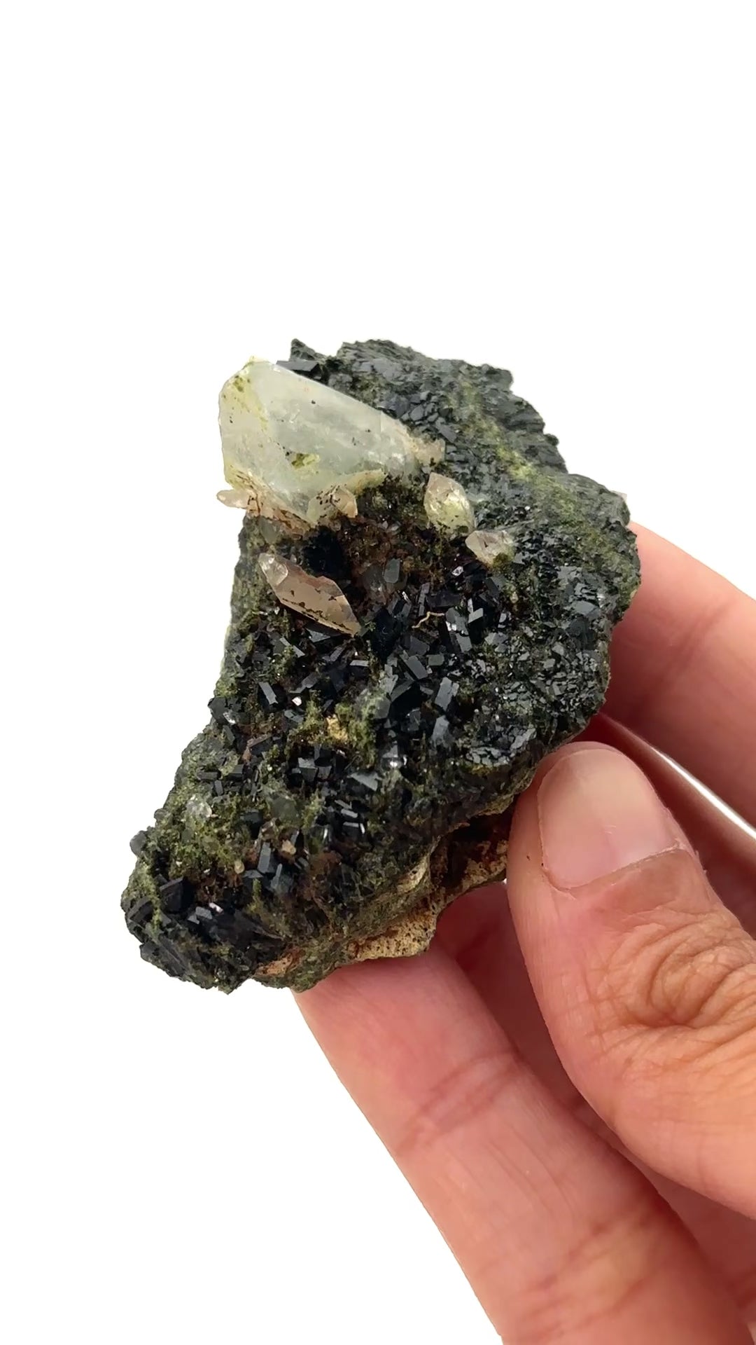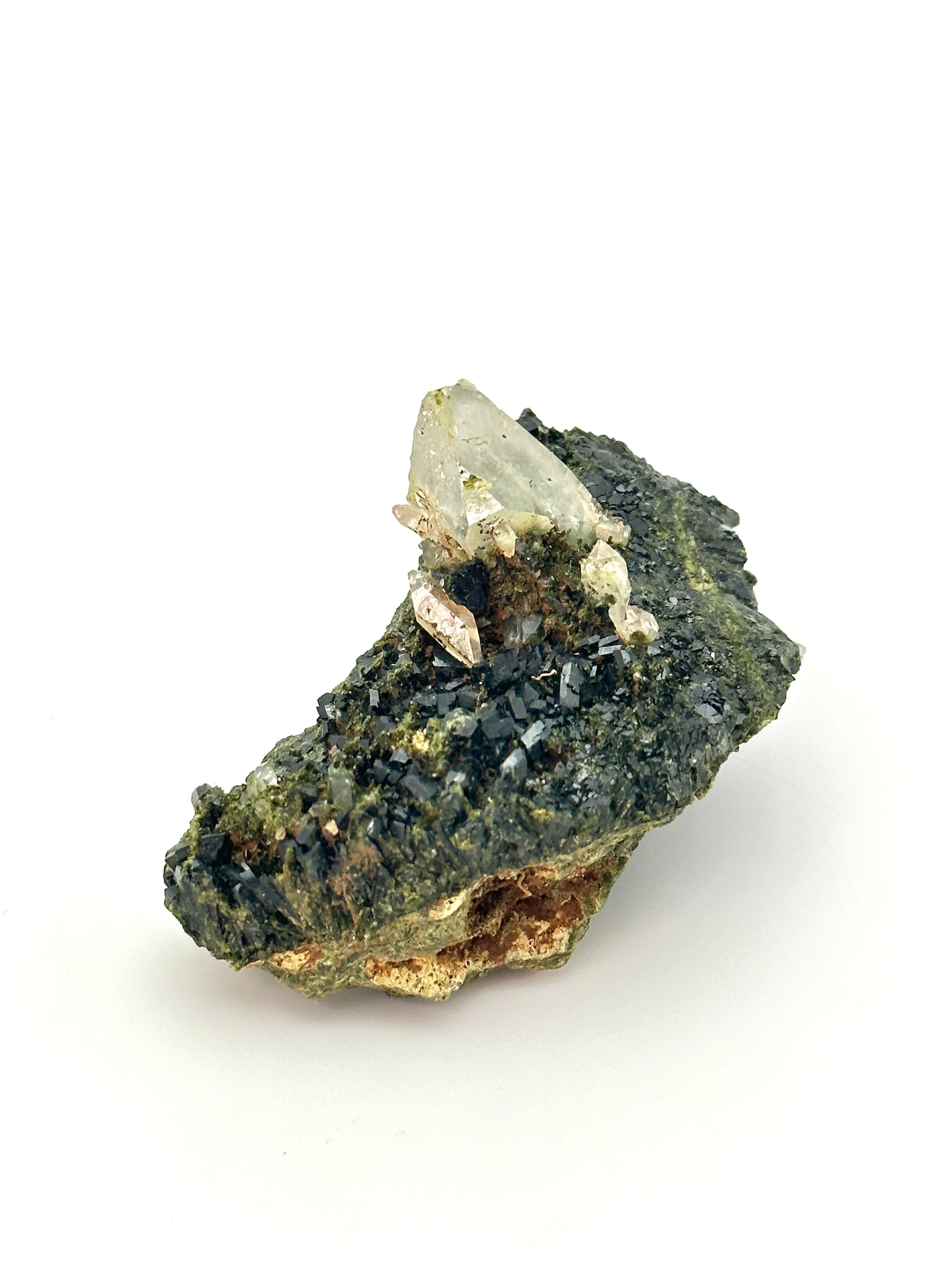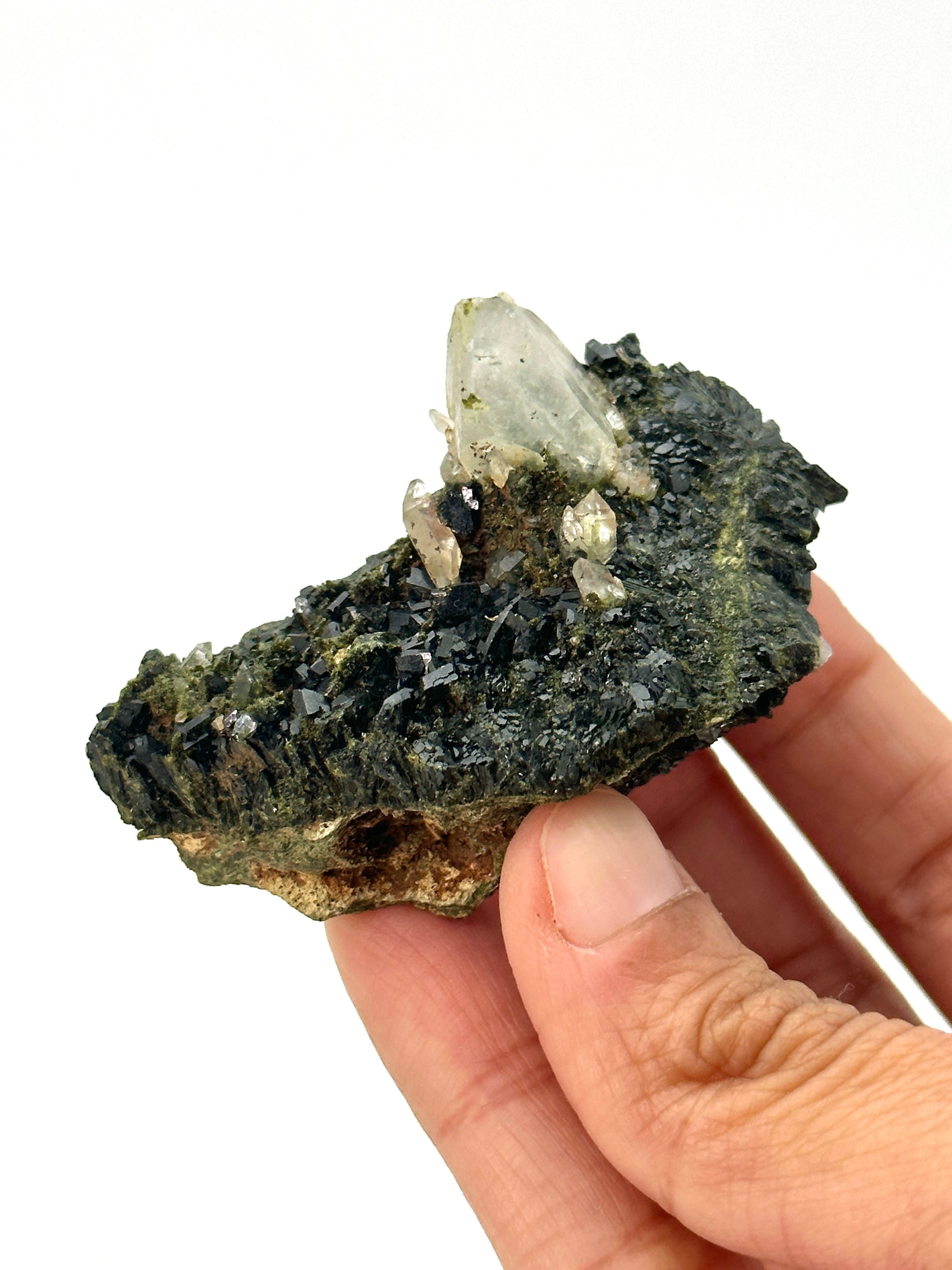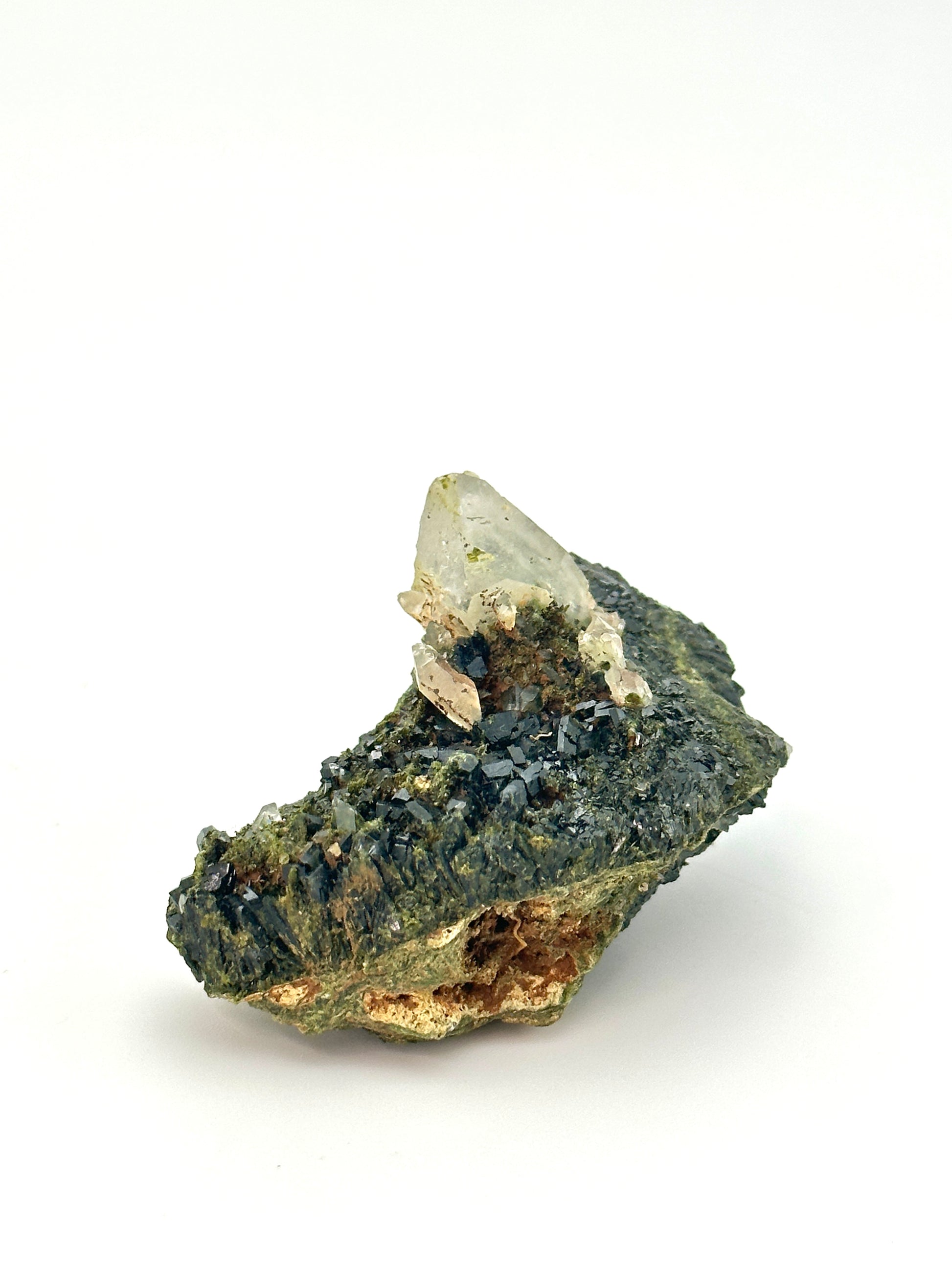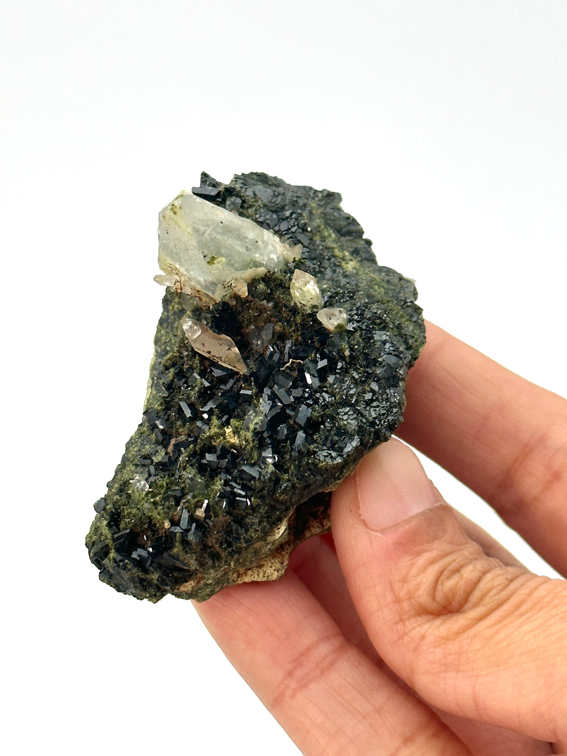 This rare and absolutely stunning combination of Forest Epidote and Quartz was only discovered in September 2023 and is mined from the Eastern Anatolian Region of Turkey.