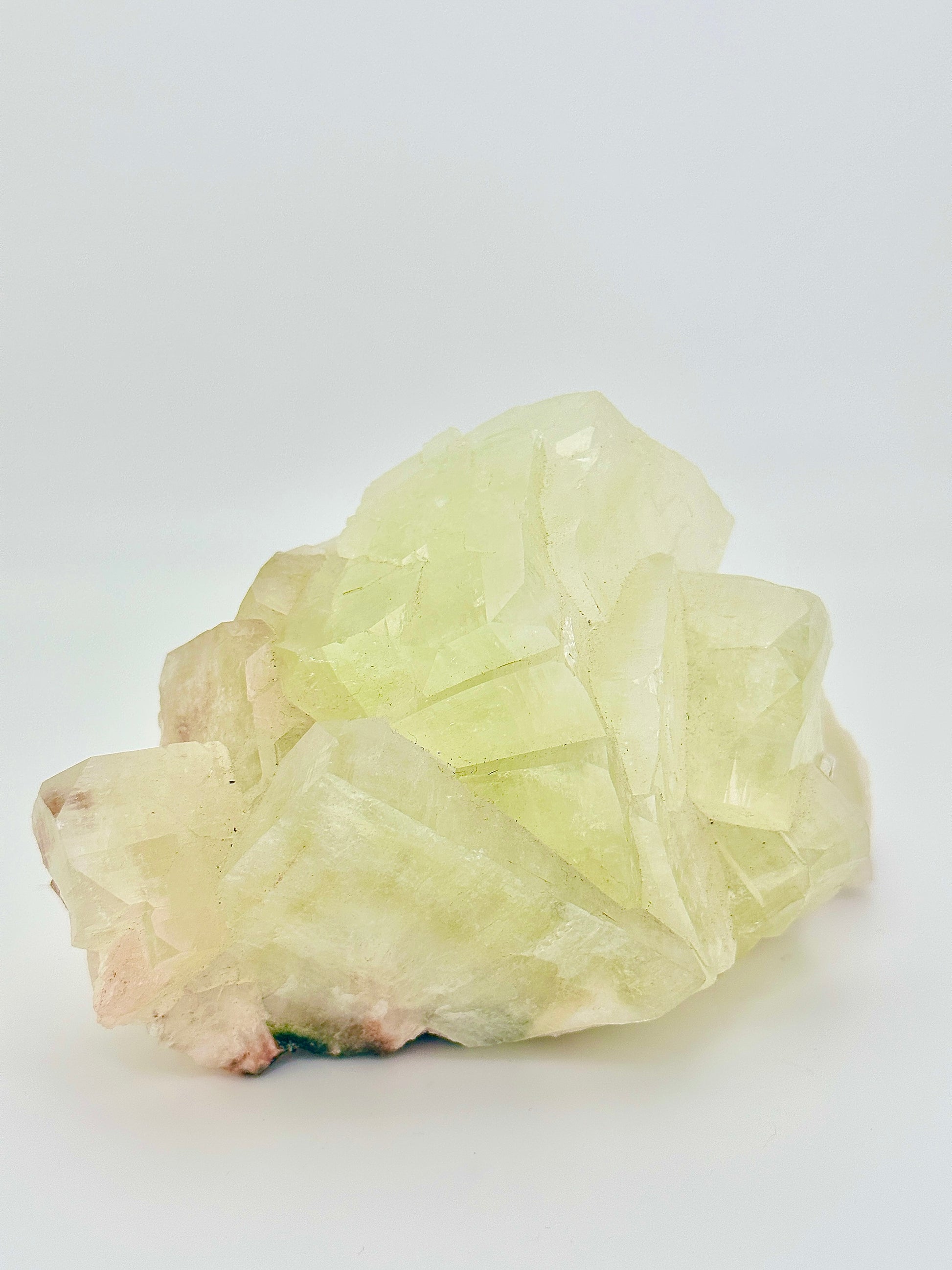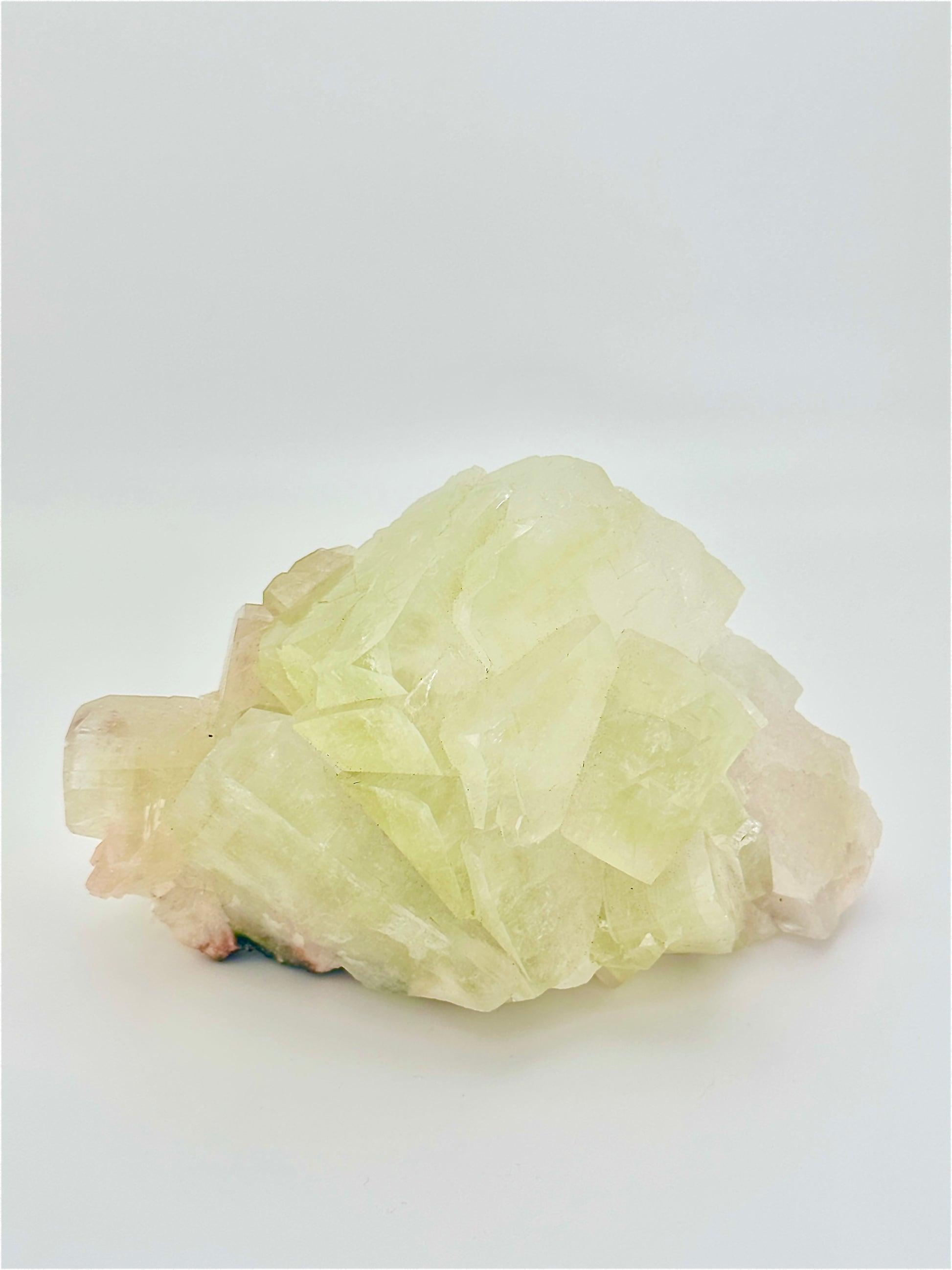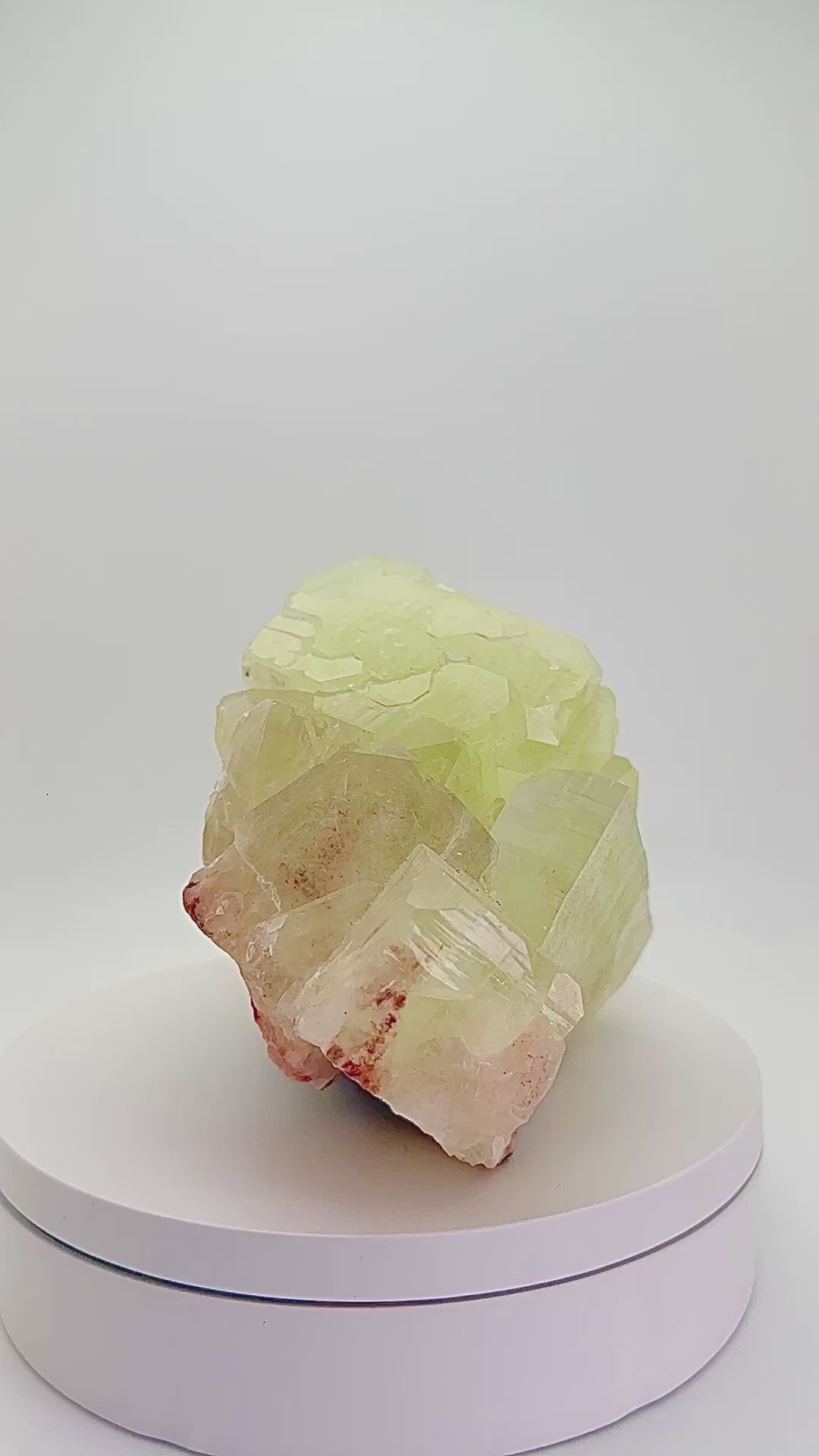 This is a one of a kind cluster of cubic Green Apophyllite with Stilbite and Hematite inclusions.