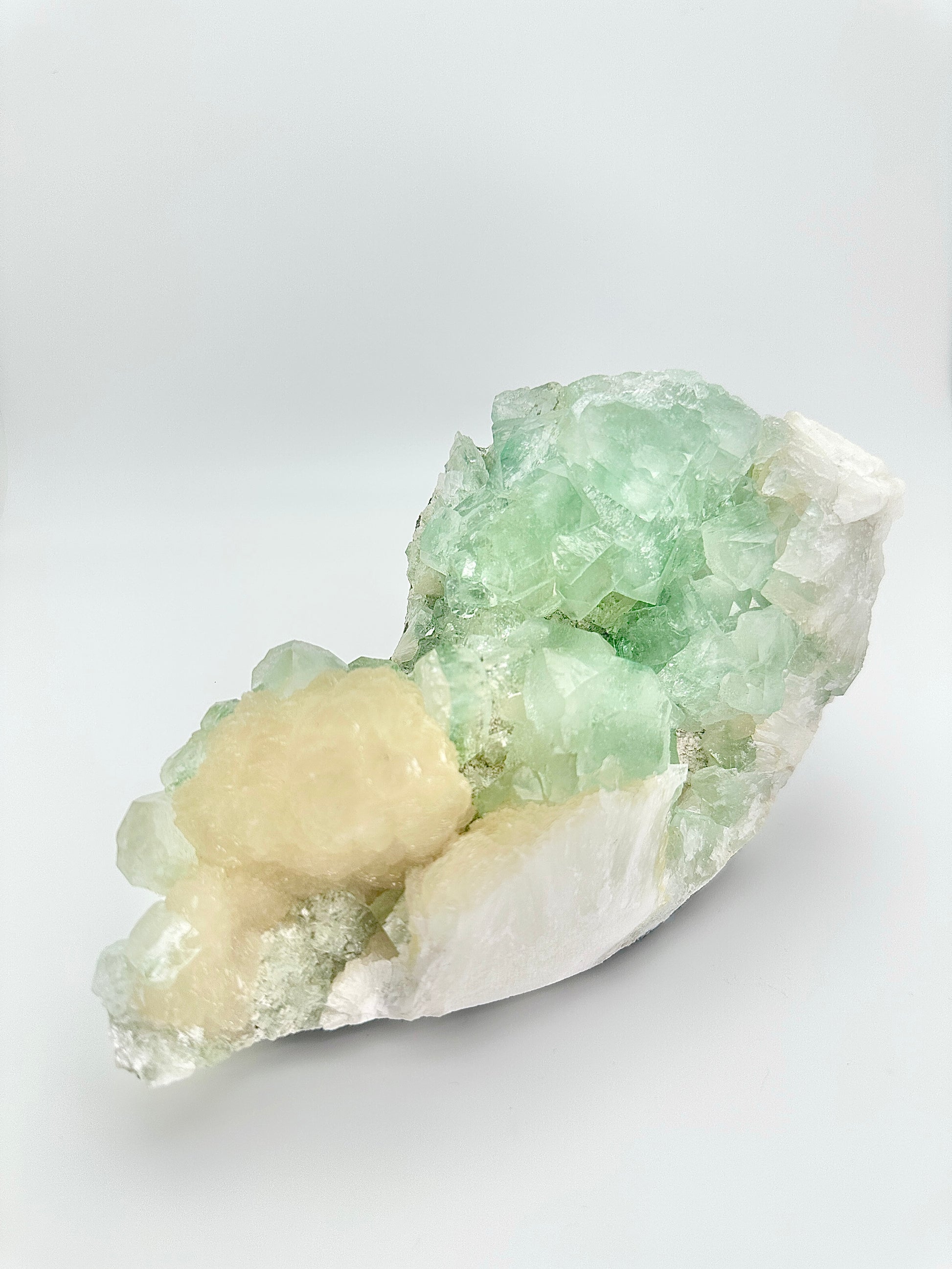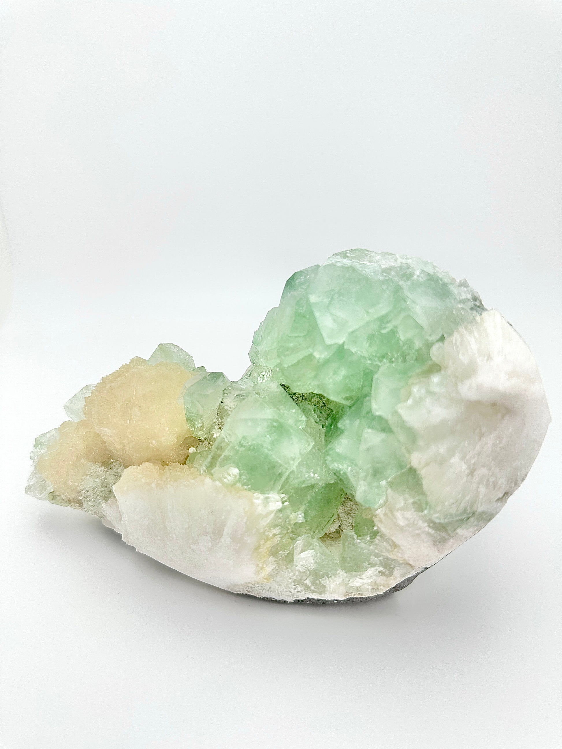 Possessing supreme clarity throughout, her Green Apophyllite will bathe you in a torrent of purifying rainbows. This colourful surge will cleanse and purify your aura so you may easily connect with your higher self. She will allow you to purge all that is not serving you and give you the courage to step into your authentic way. Your awareness will widen and she will remind you that we are all unique and the journey is your own and in order to heal and serve your purpose you must detach from your ego and expectations. It is in this way you are able to feel truly weightless.