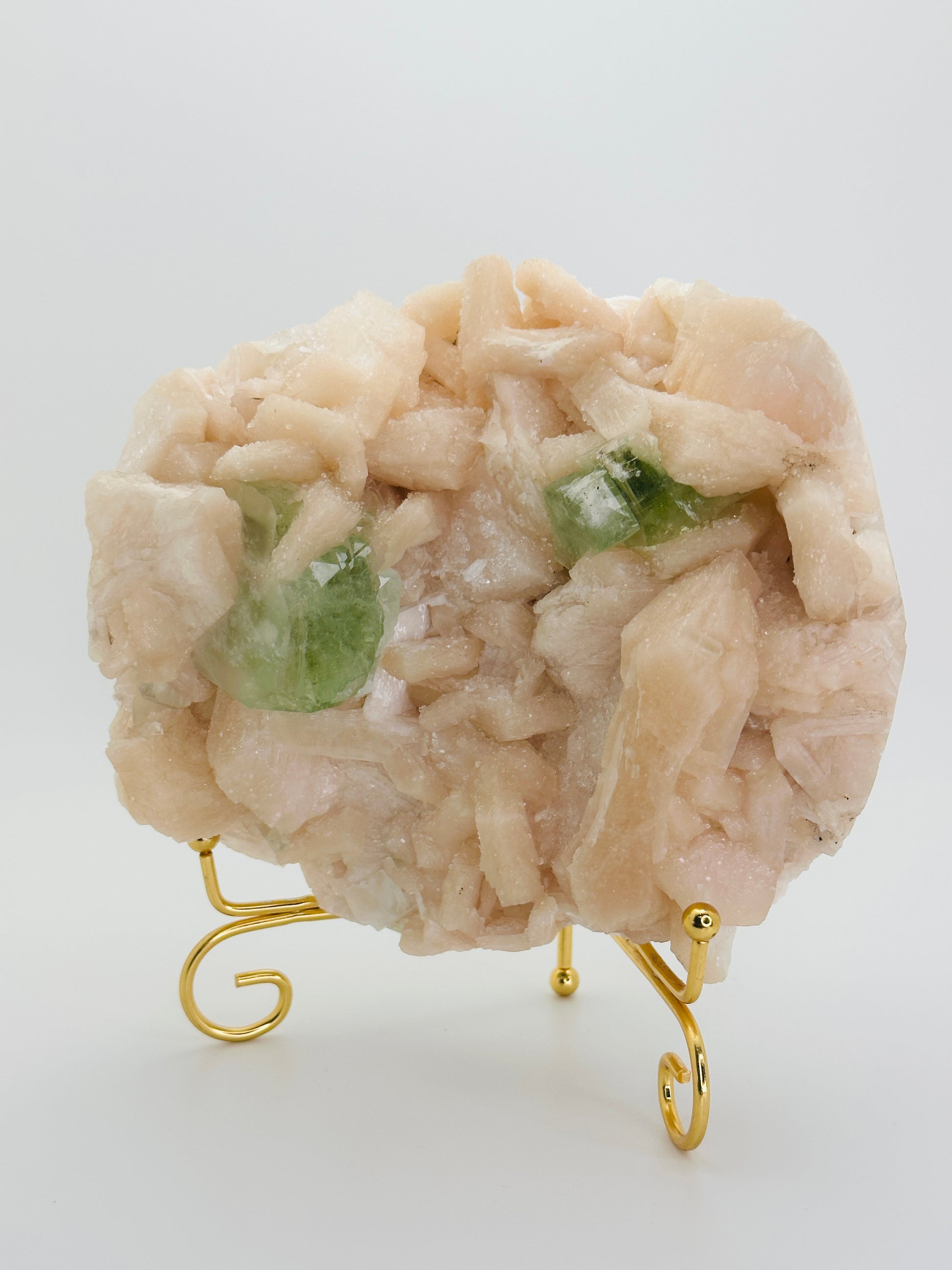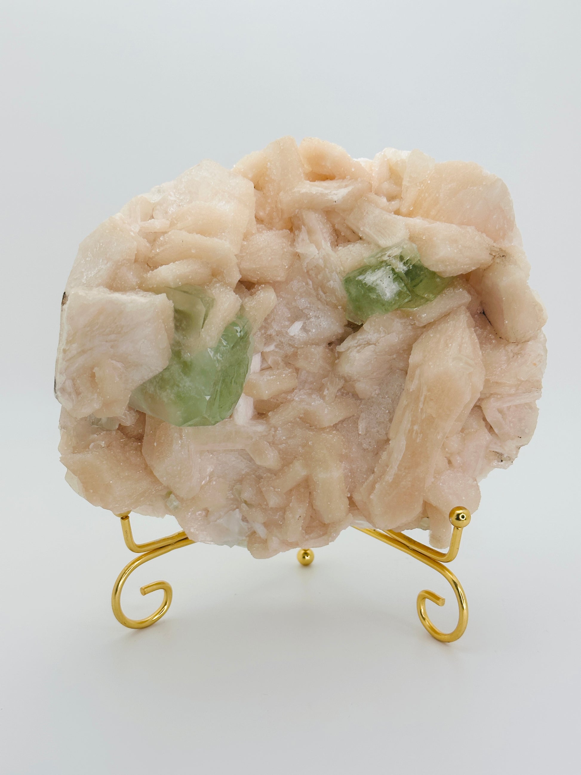 The energy from her luscious Green Apophyllite and Stilbite radiates bright like the sun itself. She will shine her golden light on every corner of your being deepening your self awareness and banishing the shadows. A deeper understanding of your experience will allow her healing energy to warm and cleanse the heart of ancestral and past life traumas. She casts away insecurities, fears and self doubt allowing all your divine abundance to manifest.