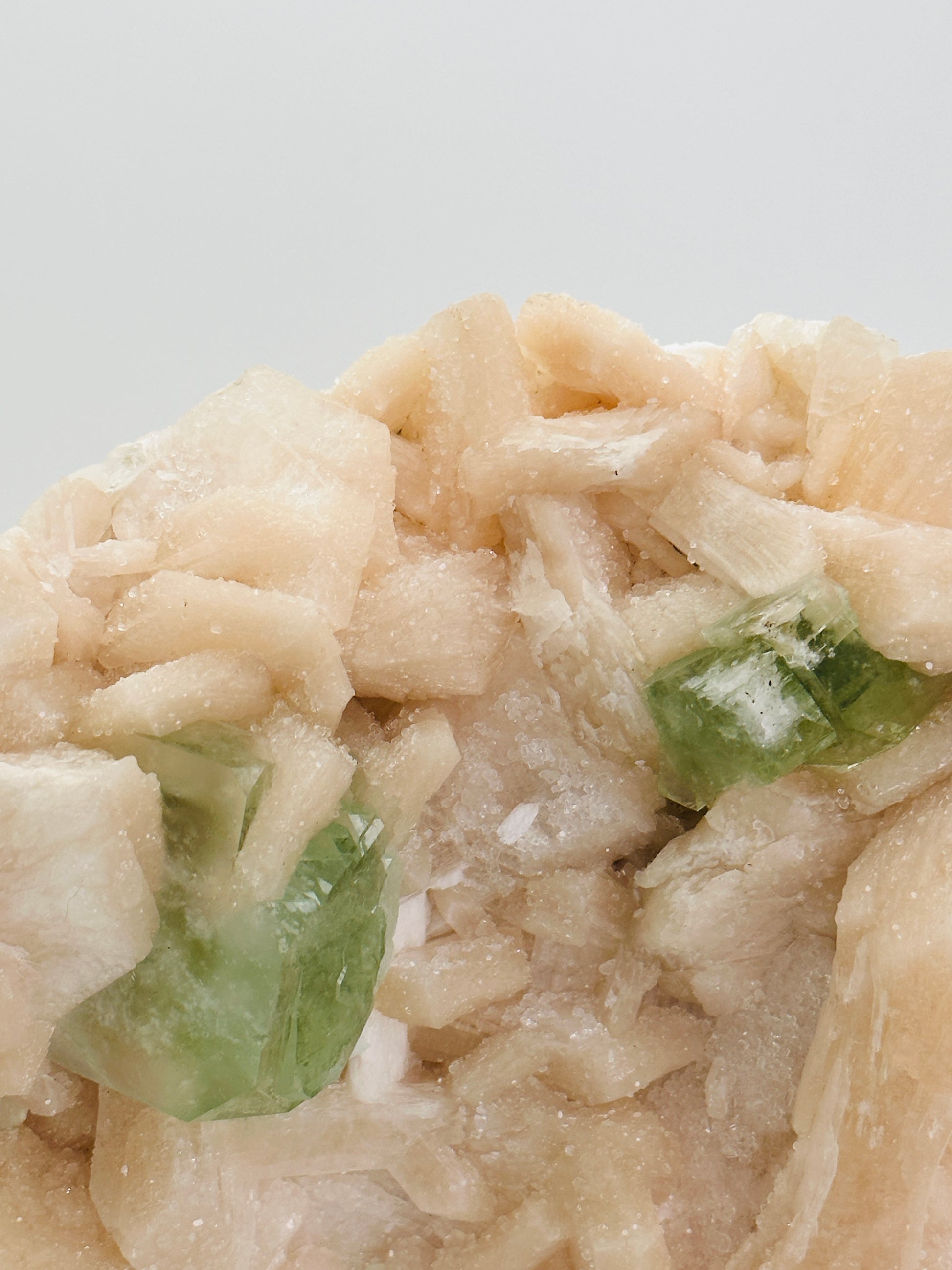 This mesmerizing piece is extraordinary Green Apophyllite and sparkly Stilbite.