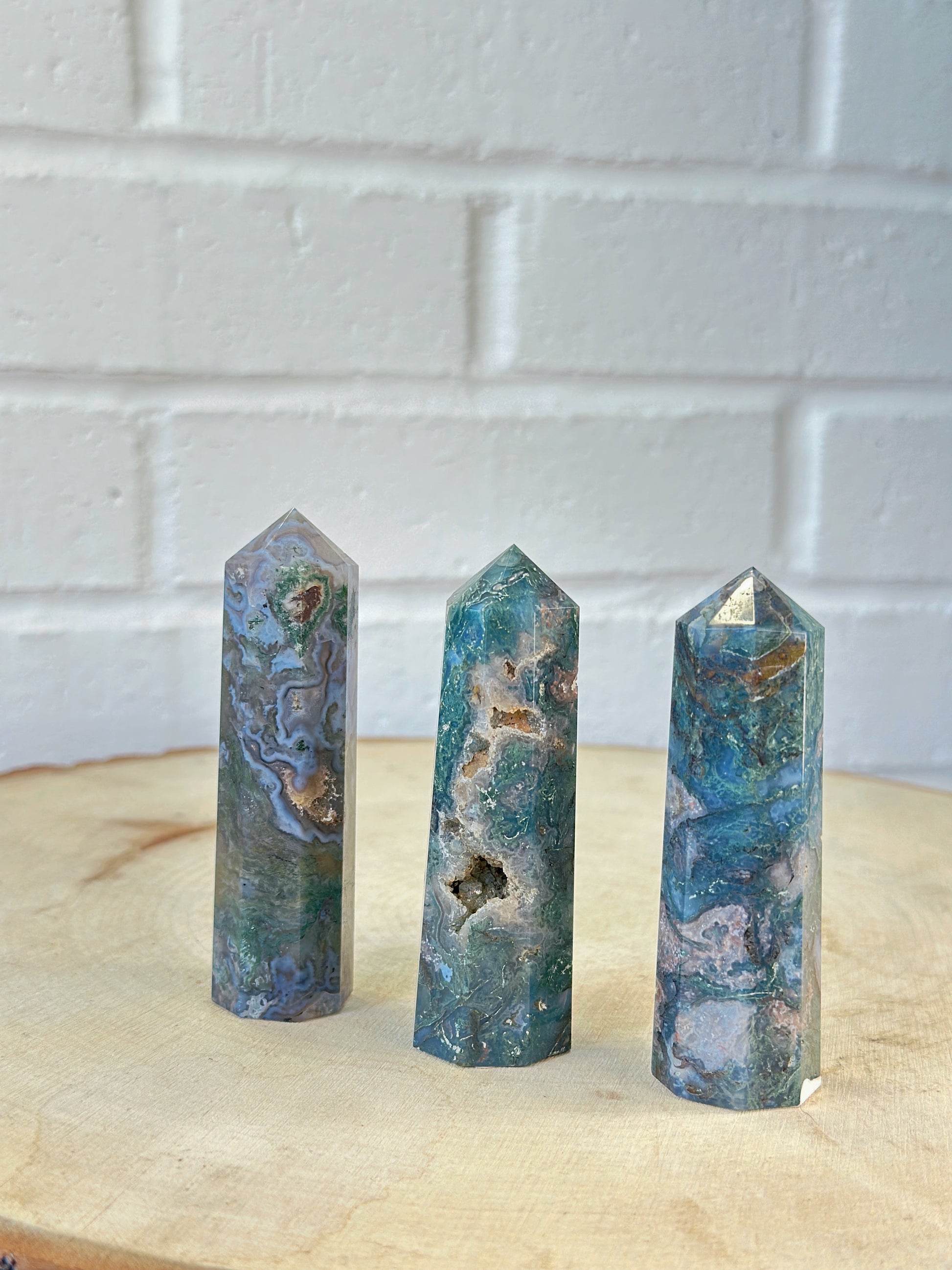 NOTE : This listing is for ONE 4-4.5” Moss Agate Tower .